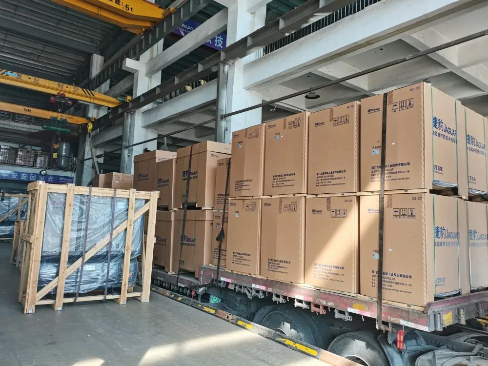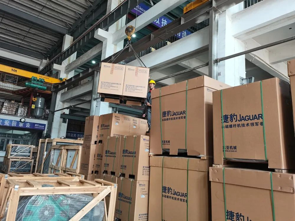 開門紅的繁榮景象,各生車間地員工加班加點,急市場所急,按時保質(zhì)保量地完成生產(chǎn)任務(wù),保證捷豹空壓機產(chǎn)品順利發(fā)出;物流車隊在廠區(qū)排起長隊,等待裝貨運往各地客戶廠里;物流與倉庫包裝的同事們也在積極調(diào)度,提高物流配貨效率,保證及時發(fā)貨。
