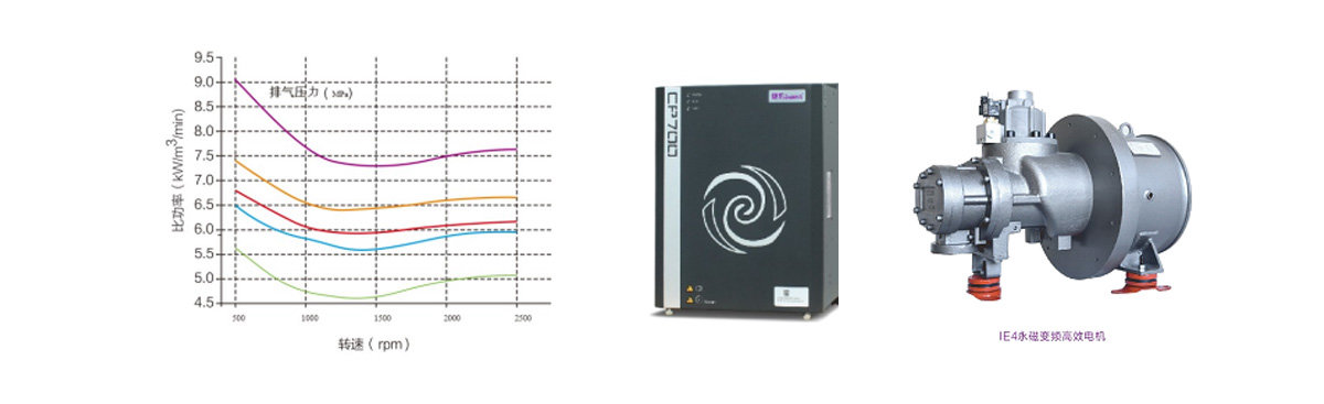 永磁變頻空壓機(jī)中低轉(zhuǎn)速的螺桿轉(zhuǎn)子選型:在對(duì)螺桿轉(zhuǎn)子的長期測試跟研究中,我們發(fā)現(xiàn):螺桿轉(zhuǎn)子的比功率隨著主機(jī)轉(zhuǎn)速的提高,先減小后增大。存在著較佳主機(jī)轉(zhuǎn)速,使得螺桿壓縮機(jī)的能效明顯提高。因此我們?cè)谠O(shè)計(jì)ZLS-Hi+系列主機(jī)時(shí),選擇優(yōu)質(zhì)的電機(jī)搭配更佳轉(zhuǎn)速下的主機(jī),使我們的每個(gè)轉(zhuǎn)子都在對(duì)應(yīng)的轉(zhuǎn)速中工作,做到優(yōu)質(zhì)能效比。 優(yōu)化機(jī)頭配比造就大排量: 由于通過長期嚴(yán)謹(jǐn)?shù)睦碚撗芯亢痛罅康男褪皆囼?yàn),為機(jī)頭配比和設(shè)計(jì)的優(yōu)化奠定了堅(jiān)實(shí)的技術(shù)基礎(chǔ)。ZLS-Hi+空壓機(jī)系列產(chǎn)品采用優(yōu)化的機(jī)頭配比與系統(tǒng)設(shè)計(jì),排氣量比同等功率壓縮機(jī)高10%。